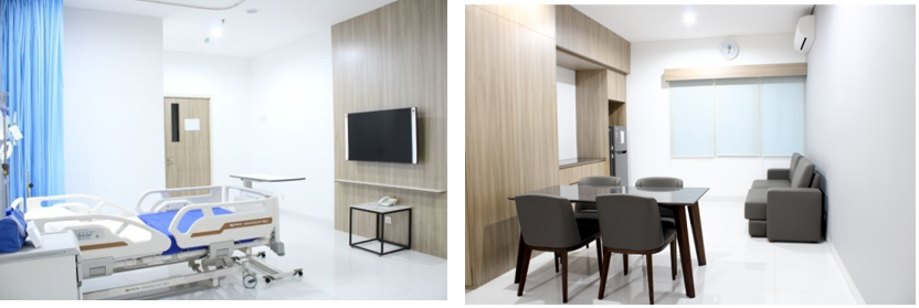 Fasilitas kamar : 1 Tempat tidur pasien 1 Sofa bed 1 Set meja makan 1 Lemari baju 1 Lemari es 1 TV 50" LED 1 Kamar mandi 1 AC 1 Nakas Kit....